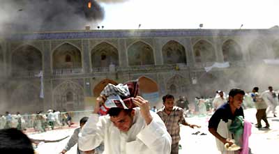 ![]() UNDER ATTACK: Iraqis are being drugged, brainwashed and sent to die for bin Laden, says Colonel Karim Sultan, chief of police in Iraq’s holy city of Karbala. Suicide bombers killed 112 people there on March 2, 2004. Shortly before the attacks, Sultan’s force raided outlying villages, netting other possible suicide bombers and $20 million in narcoticsmost of it suspected as coming from Iran. In Ukhaydir, southwest of Baghdad, explosives and recordings of bin Laden’s speeches were found. |