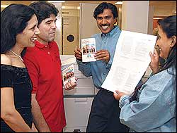 Radio talk show host Daphna Hernandez and husband, Robert, a video producer, are shown fresh-off-the-press samples of The Way to Happiness booklets, which are custom-covered to suit any individual's or organization's intended publics.