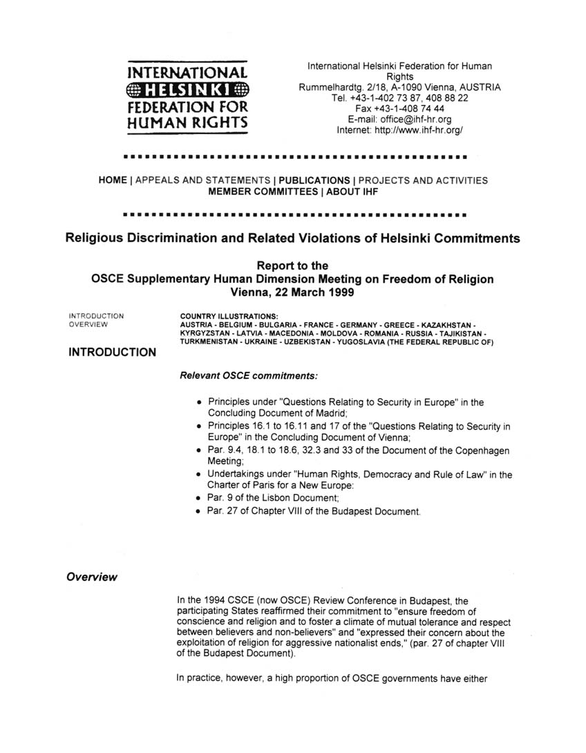 a été un rapport présenté à la conférence par la Fédération Internationale dHelsinki pour les droits de lhomme (FIH).