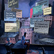 “Help a man have a better life” reads a cardboard sign next to him, not far from a wheelchair and a telltale medical marijuana container. A gust of wind flips the sign over, revealing a more pointed plea: “Help—I need a tent.”
