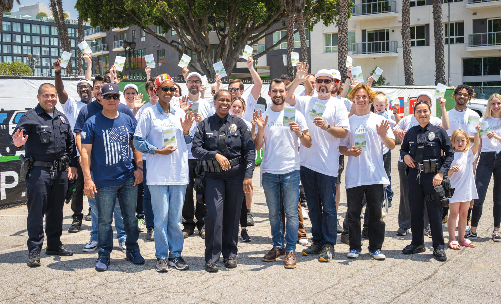 In all, 64 volunteers, from age 2 to 74, joined in the Hollywood Neighborhood Cleanup beautification project. Among them were several who had seen notices on social media and joined in the endeavor—from a neighbor of the project site, to a mural artist from North Hollywood, and a Colombian native in Venice Beach who jumped at the chance to put art and volunteering to a worthwhile end.