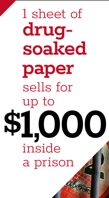 Once past the gate, the papers are torn into strips by inmates and smoked, triggering overdoses, seizures and violent confusion.